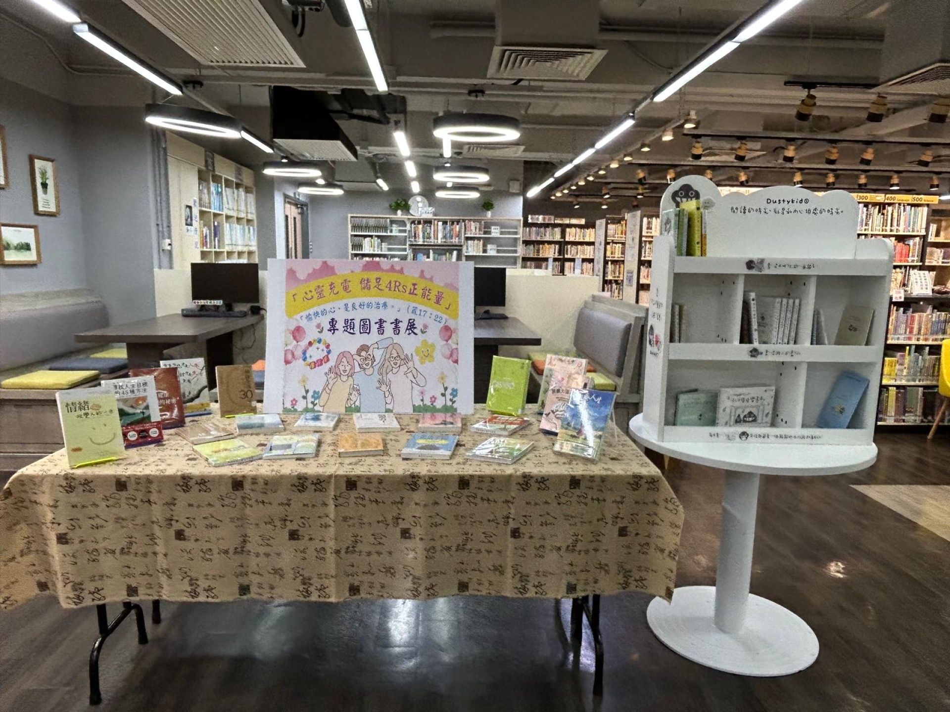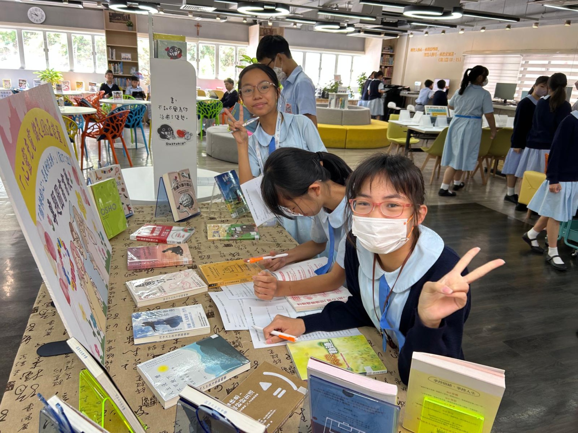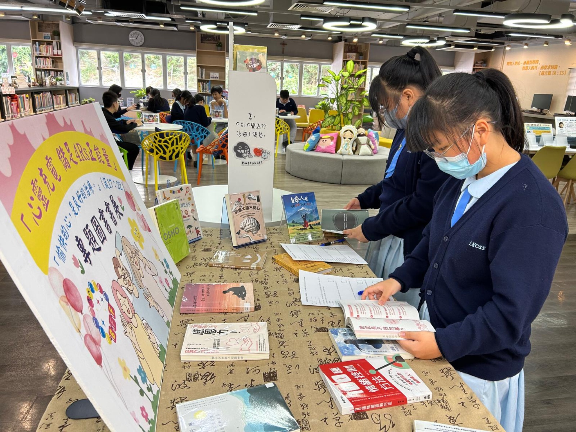 本校於2025年10月31日至11月7日在圖書館舉辦了精神健康主題書展。「閱讀推廣及圖書館管理委員會」與「輔導委員會」聯合以「心靈充電儲足 4Rs 正能量」為題,準備了與提升抗逆力、面對不同情緒相關的繪本和書籍,讓同學在小息及午息放鬆心情,紓緩統測所累積的壓力。
