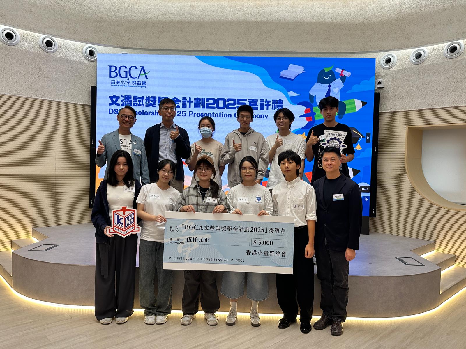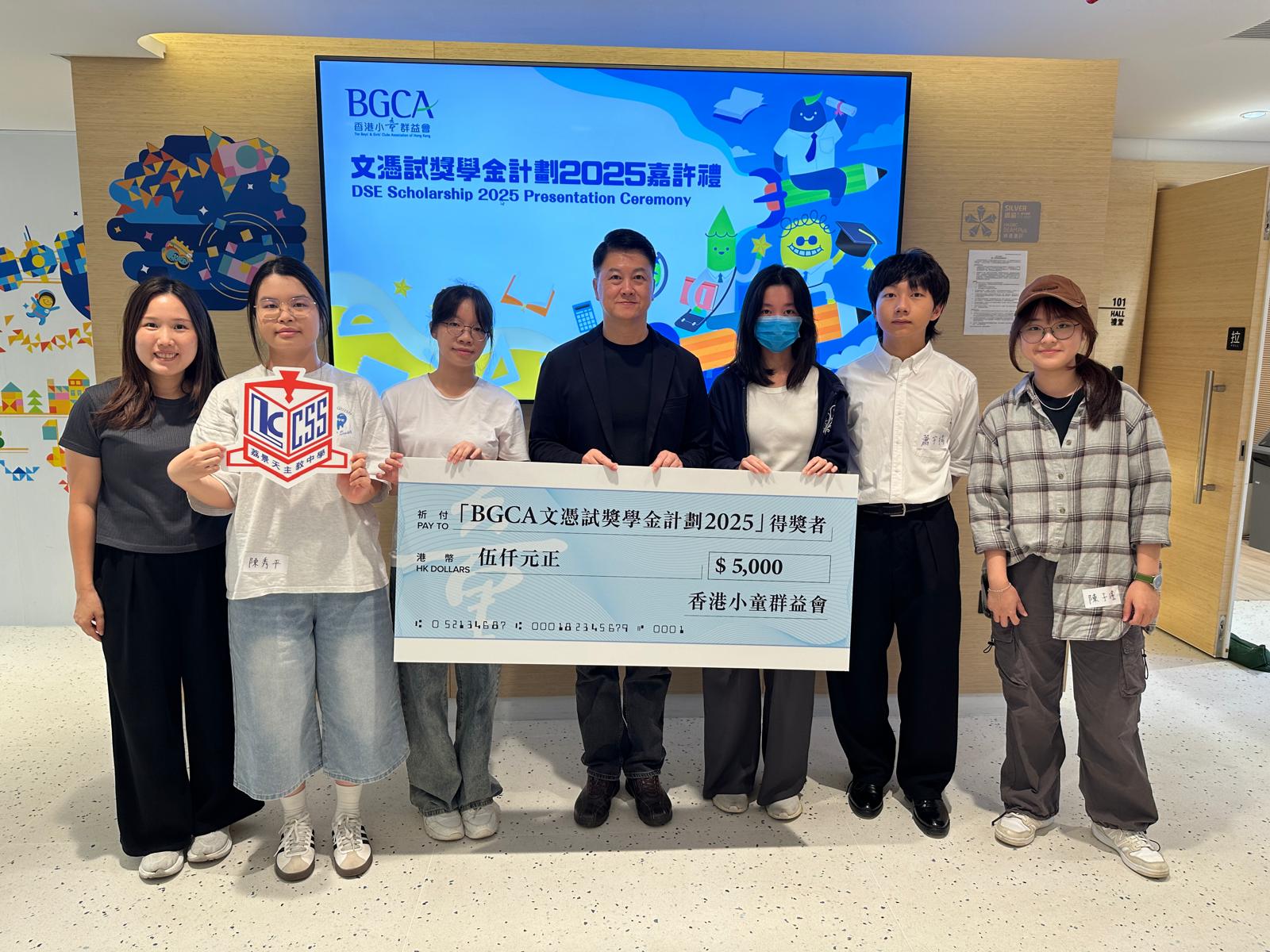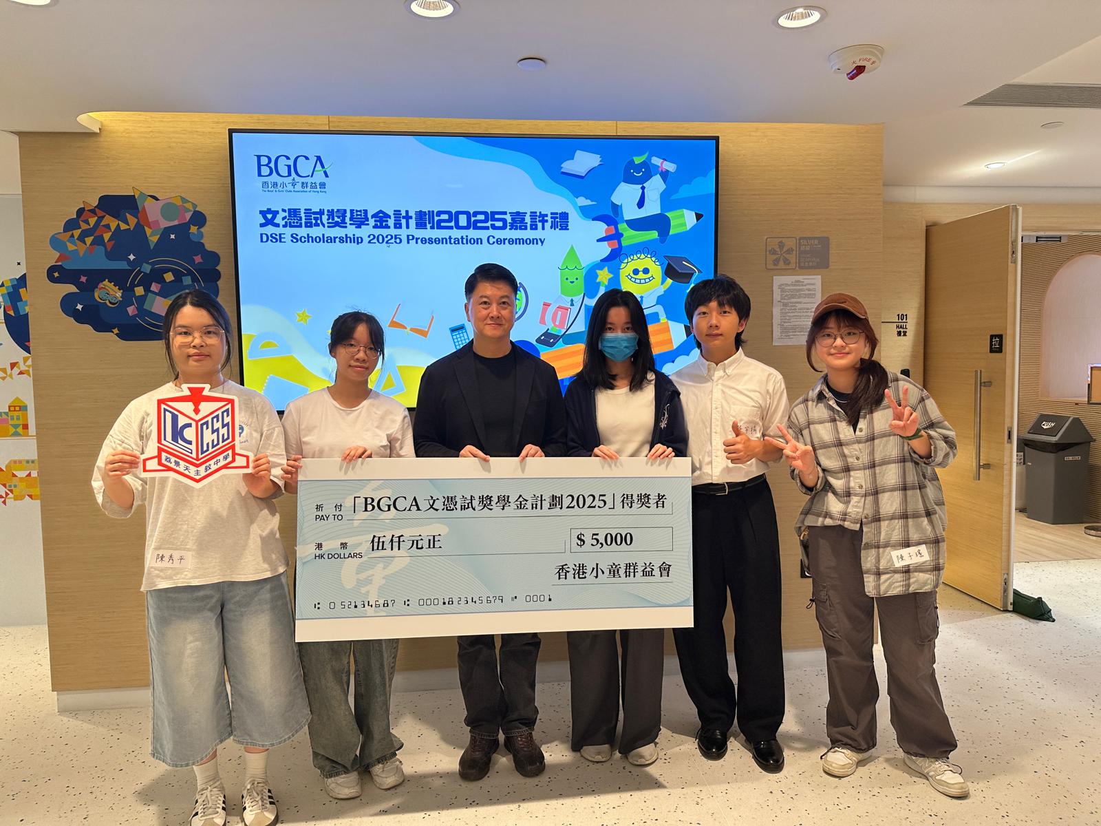 校友陳秀平、陳子瑤、張文琪、林惠欣及蕭宇揚(2025 畢業)於 BGCA 文憑試獎學金計劃 2025 各獲頒獎學金$5,000。