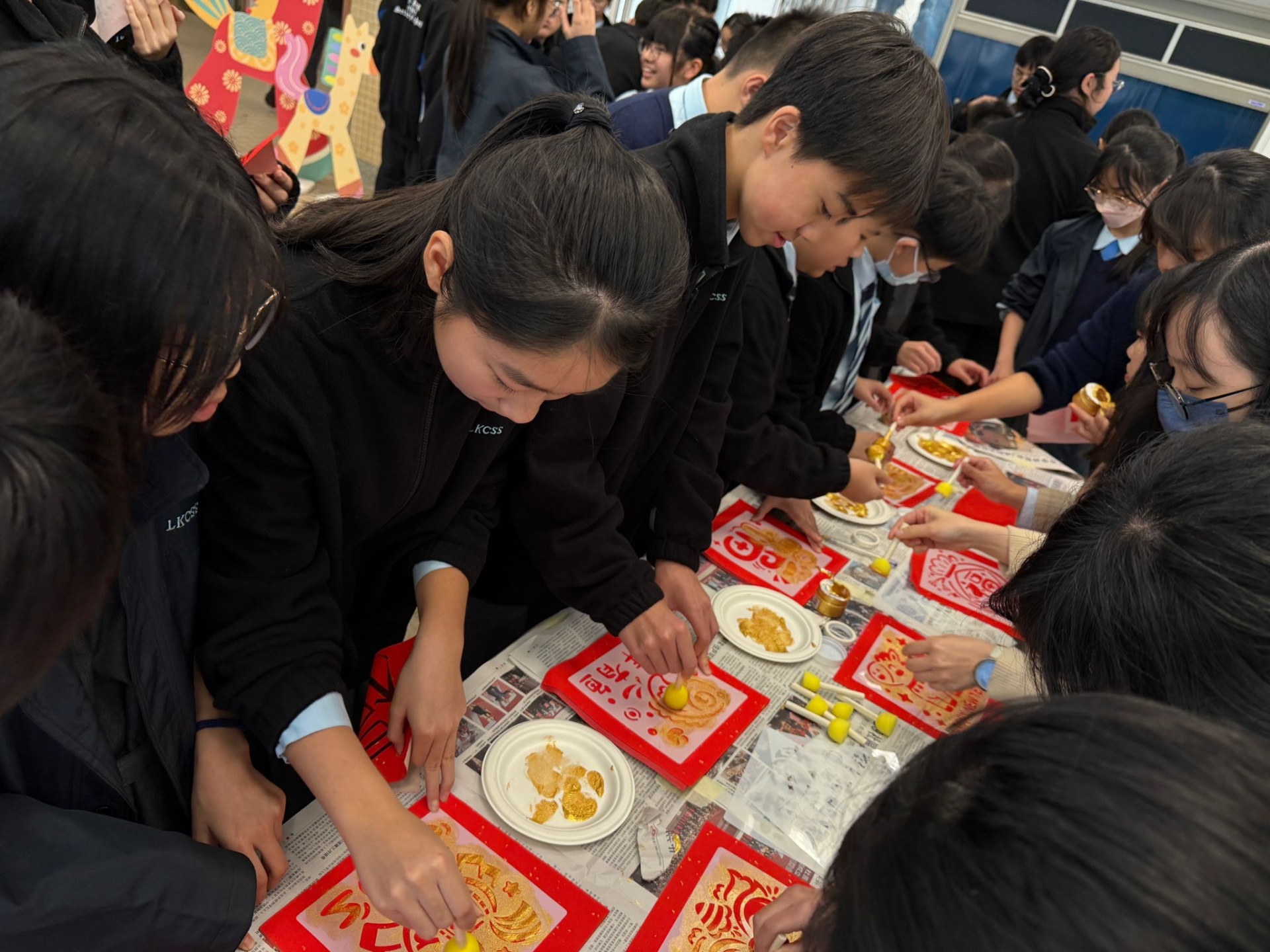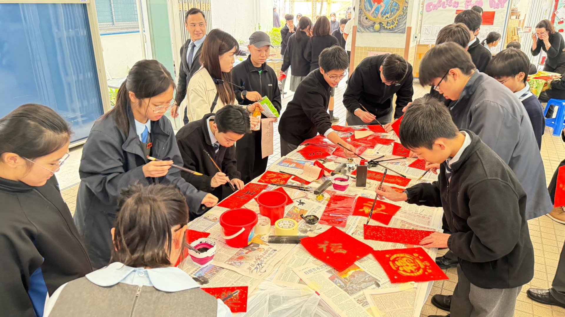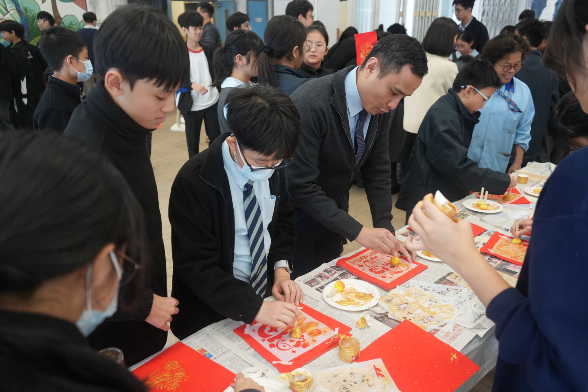 國民教育統籌委員會於午息舉辦新春寫揮春、新年拓印及擲銅錢攤位遊戲,師生踴躍參與,同賀新春。